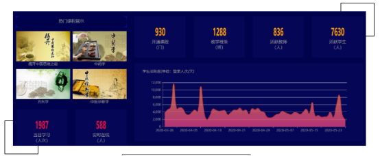 “因为数据,所以智能”,通过学生的详细学习过程数据的收集和积累以及教师在线教学工作的评估,应用大数据可视化工具可以实现师精准教学、学生精准学习、督导精准评价、学校精准管理。