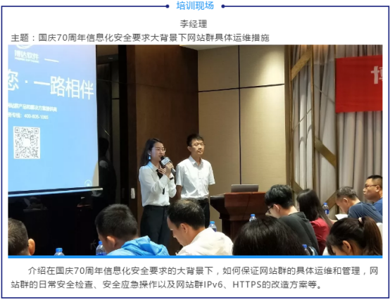 此次培训,来自全国80所高校近百名网络信息中心负责老师针对全媒体网站群的全新构建,全媒体建设、全媒体信息发布、全媒体管理体系、全媒体融合能力等内容进行专项研讨和培训。深入落实《教育信息化“十三五”规划》和《教育信息化2.0行动计划》,进一步落实工业和信息化部于2019年4月发布的《关于开展2019年IPv6网络就绪专项行动的通知》和2019年12月1日正式实施的等保2.0。