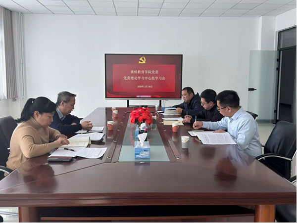 3月18日下午,继续教育学院党委举行理论学习中心组学习会暨树立和践行正确政绩观学习教育读书班集中研讨,学院领导班子成员参加会议,会议由学院党委书记姜文超主持。